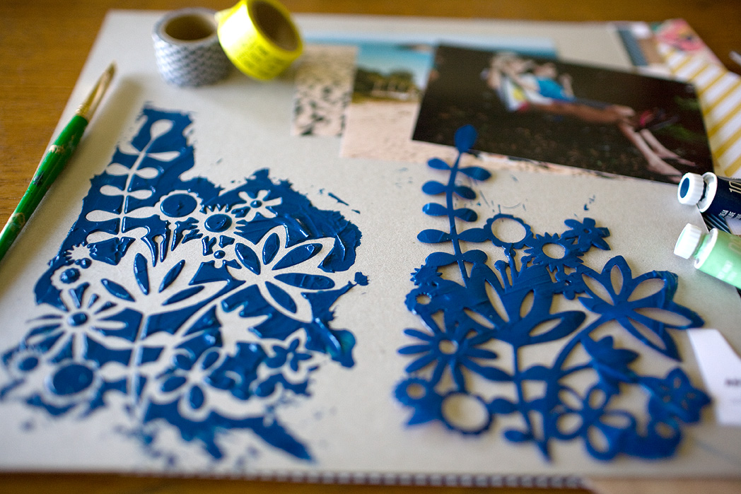 The class calls for a Silhouette machine and since I don't have one, I used some of my old KI Memories Lace paper. I did borrow one from Amy though, so I am excited to get practicing in the next few weeks! Close up of Elsie's negative. SO PRETTY and gunky and all that texture! We definitely loved all the smearing without worrying process π The lifting up and revealing is also pretty cool.